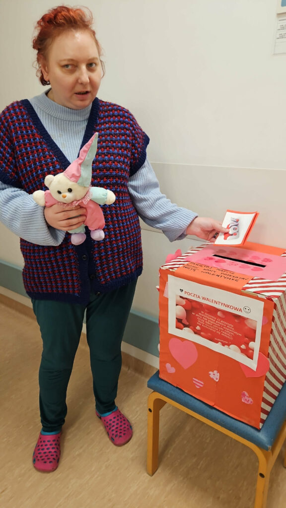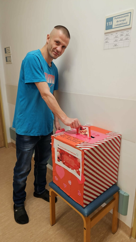 Walentynki rozpoczęły się od przygotowania skrzynki, do której Mieszkańcy wrzucali kartki z życzeniami i miłymi słowami. W dniu święta kartki zostały odczytane i przekazane adresatom, wywołując wiele radości i uśmiechu. Spotkanie upłynęło w miłej atmosferze, a wspólne śpiewanie i słodki poczęstunek były jego pięknym dopełnieniem.